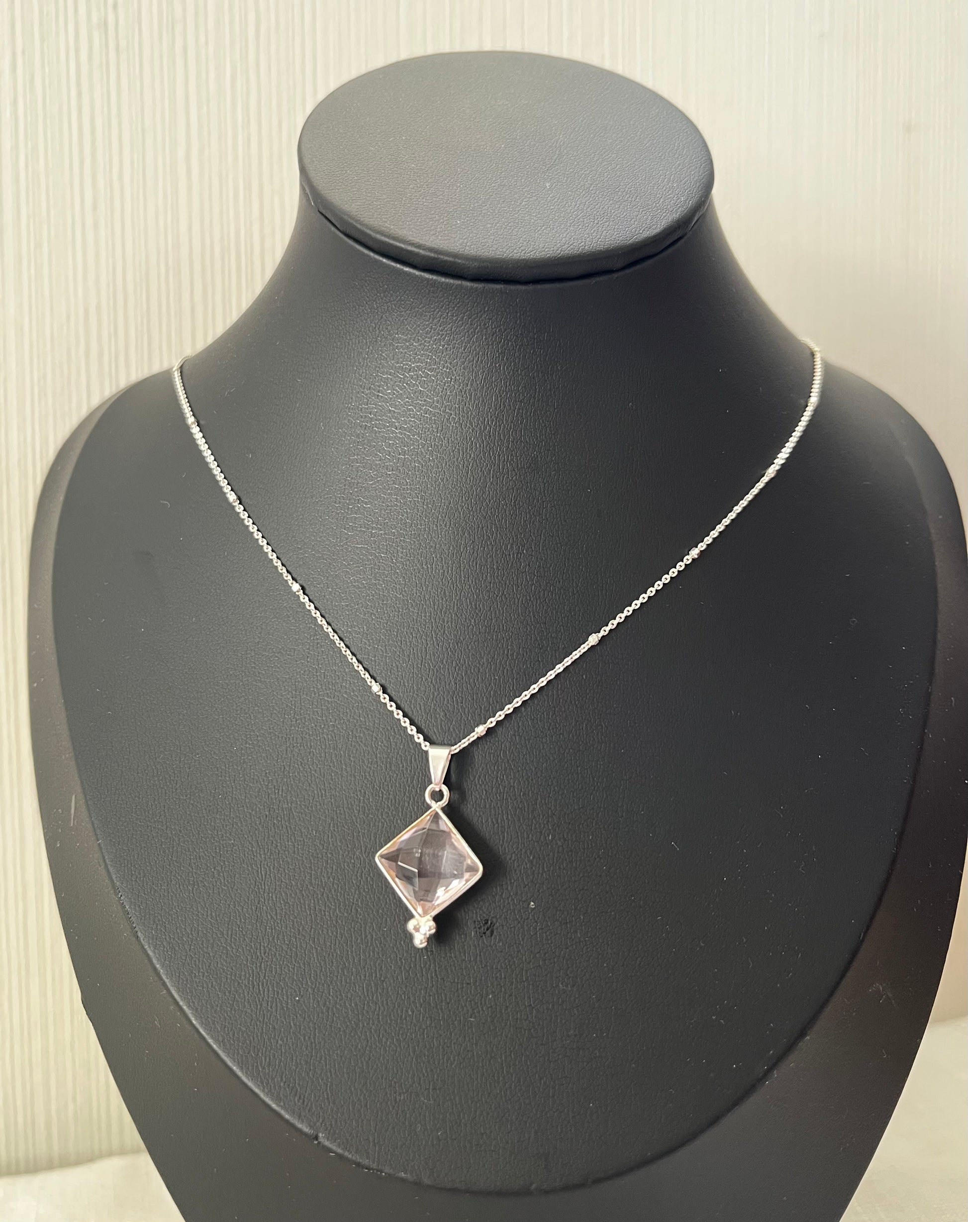 Cadena de plata 925 de 45cm con un cristal rosa de plata