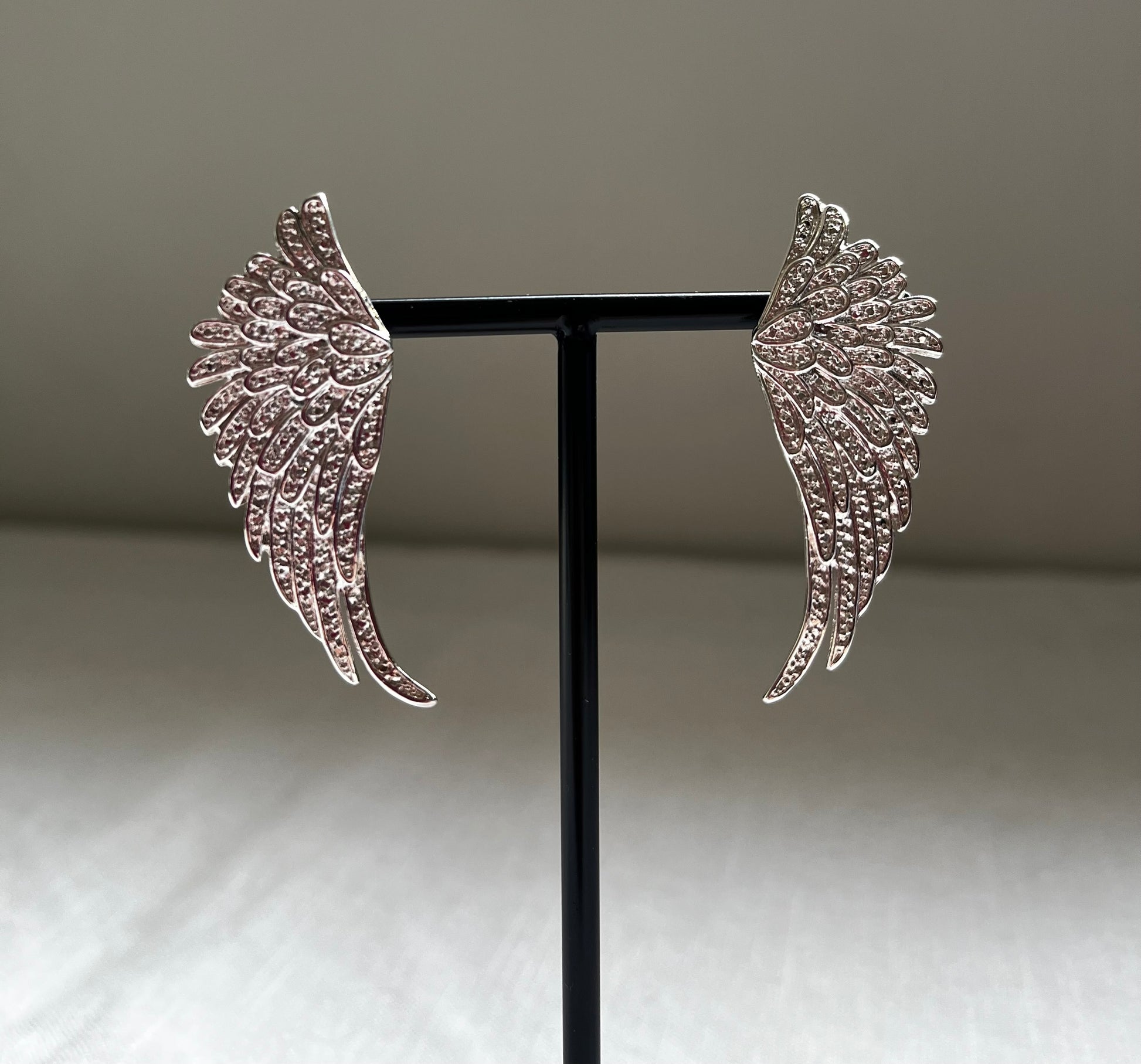 Aros de alas enchapada en plata 925 con pequeños destellos plateados